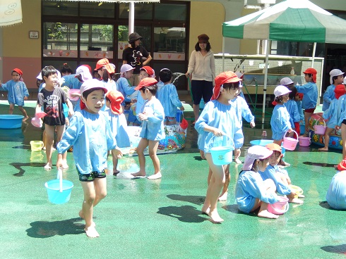掃除をした後は、汗をかいたみんなもすっきりする為に 水あそび です。