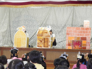 先生たちからの「たかぎ劇場」のお話は、3匹のこぶた です。