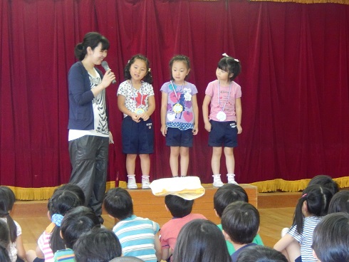 最後まで止まらずに跳べた3名には先生手作りのメダルをプレゼント。