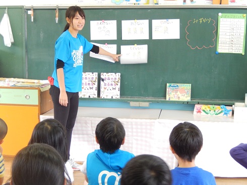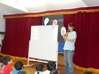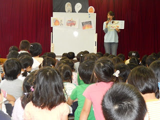 「消防士さん」(ペープサートです)の話をとても集中して聞いていました。