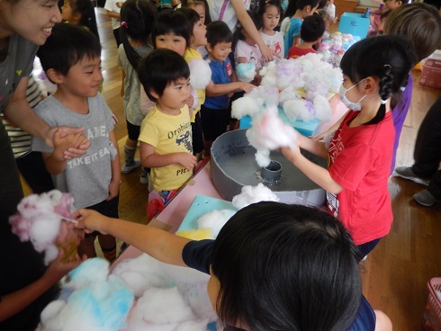 綿菓子は、注文をうけてから一度機械の中で回してから渡していました。