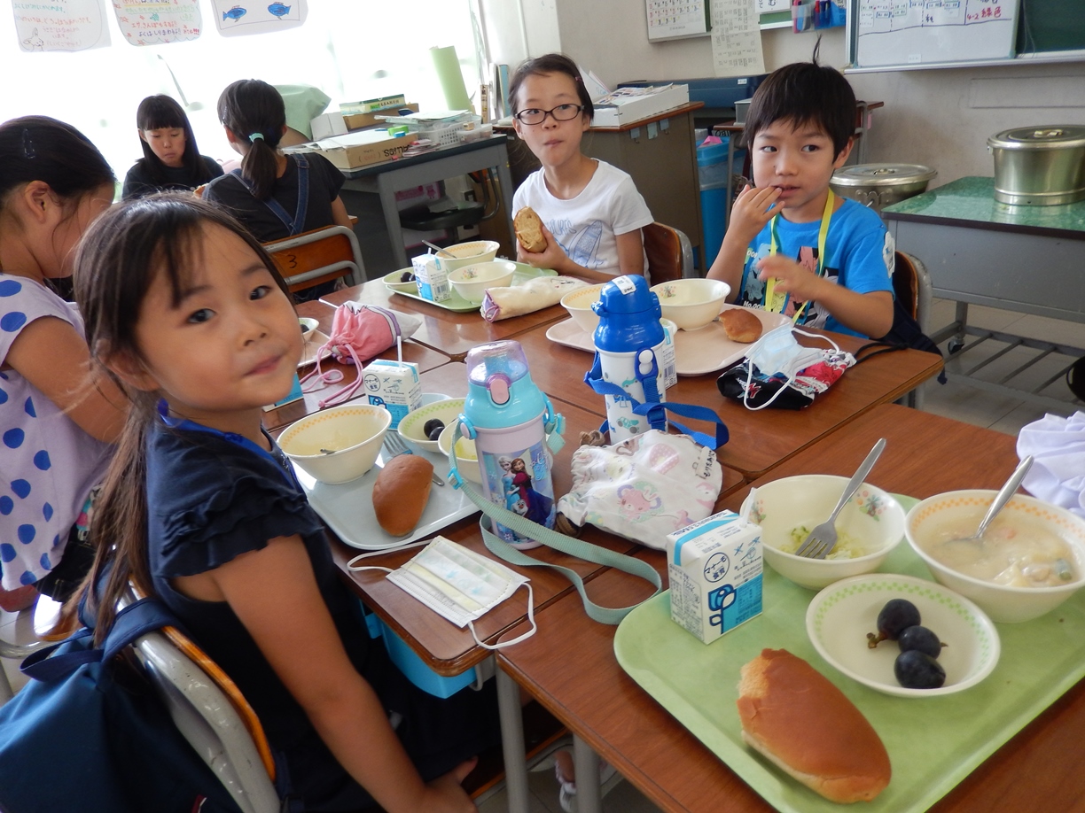 年長組が大豆戸小学校へ交流会に行ってきました。給食も一緒にいただきます。