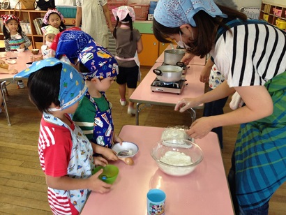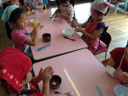 月もきれいに見える季節です。今日は年中組が白玉だんごを作りました。