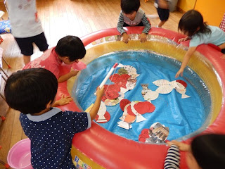 今日は、みんなで魚つりを楽しむということで、まずは魚を作りました。
