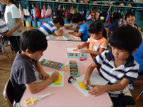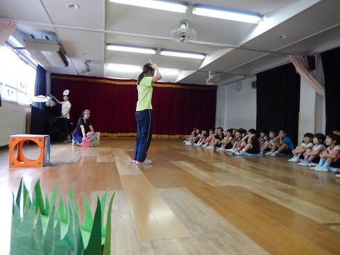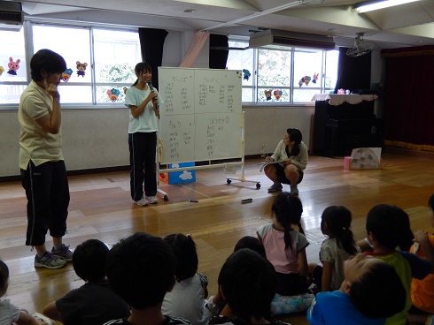 1学期からお話や歌を教えてもらい楽しんできた年長組。
