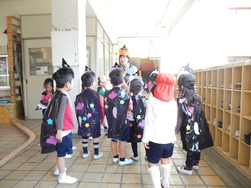 今日は、幼稚園のハロウィン。年中組も今日は「マント」を作り、ますます盛り上がってきています。