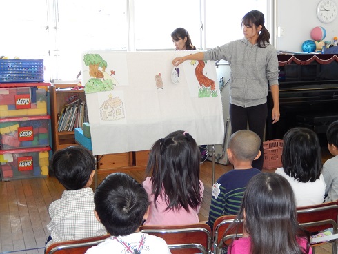 自分達が出したアイデアが詰まったお話を、みんな真剣に聴いていました。