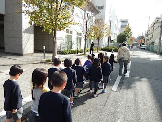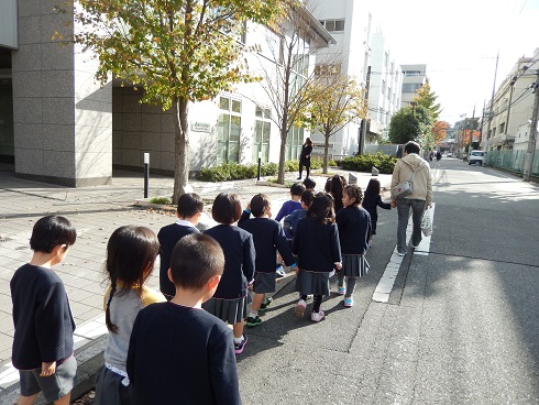 年少組には年長組が手をつないで歩いてくれました(年少組さんから「それは取っちゃだめなんだよ」と言われている年長組もいましたが・・・)。
