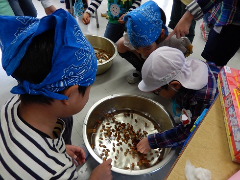 秋のもの(どんぐりなど)を使って、ゲームやオモチャなどを作って用意してくれていました。