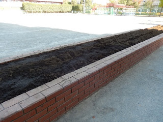 今は土だけですが、4月の入学式の頃には満開のチューリップを