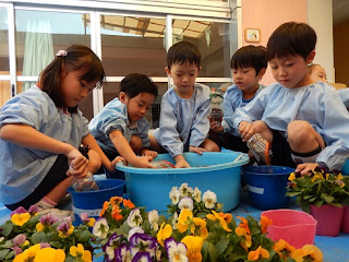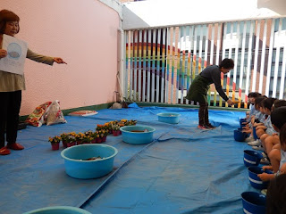 花育の先生から改めて必要なことを教えてもらい、実際に鉢に植えました。