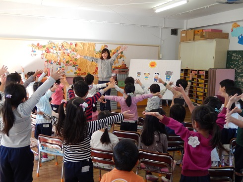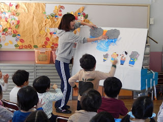 今日、年中組は各クラスで新しいお話を教えてもらいました。