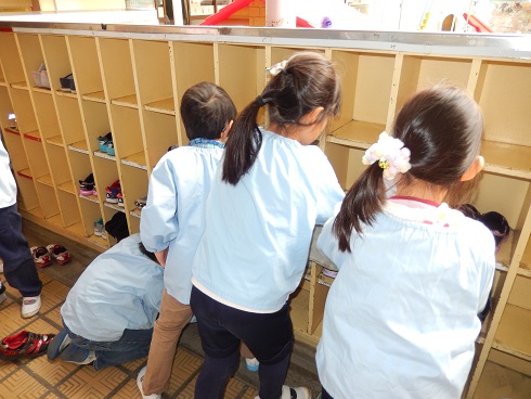 今日は大掃除の日。2学期に使った靴箱・部屋の道具箱・おもちゃなどを綺麗に掃除しました。