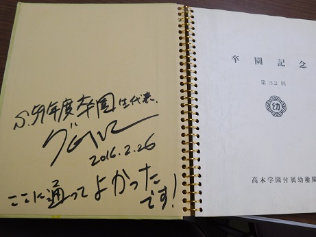在園当時はM先生のクラスだったそうで、アルバムを一緒にみました。