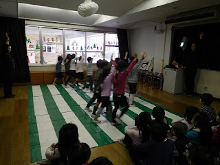 道路にいると聞く音のクイズや、絵の中の危ない子を探す、標識クイズなどがありましたが、みんなとても興味を持って聞いていました。