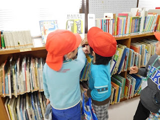 今日は、年中組が港北図書館へ。
