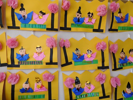 各学年で作るひな人形は違いますが、どれも可愛らしいです。