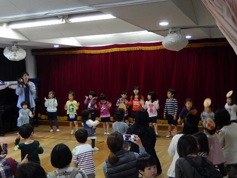 最後には、遊戯室に集まり、年長組のお兄さん・お姉さんたちが先生役となって♪あんぱんまん体操を元気に踊りました。