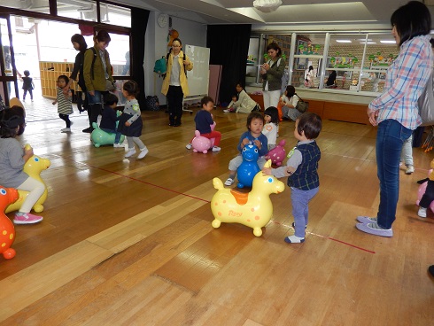 園庭では遊べなかったのですが、遊戯室では、ロディに嬉しそうに乗っている姿が見られました。