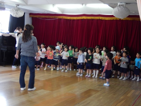 年少組が遊戯室に集まって、ルールのある遊びを教えてもらいました。