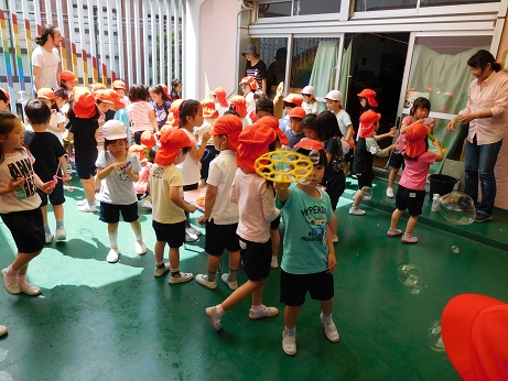 午後にはまたまたたまじろうさんが来て、ストロー以外のものでしゃぼんだまを作ってくれました。