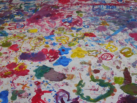 今日はゆきぐみがえのぐで遊びました。今回もみんなで相談し、テーマを「森のどうぶつえん」にしました。動物園の入り口、動物、おり・・・色々な物を描いていました。