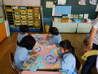 友達の様子を見つつ、考えながら作っていました。とってもかわいい「かたつむり」が出来ました。