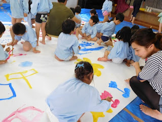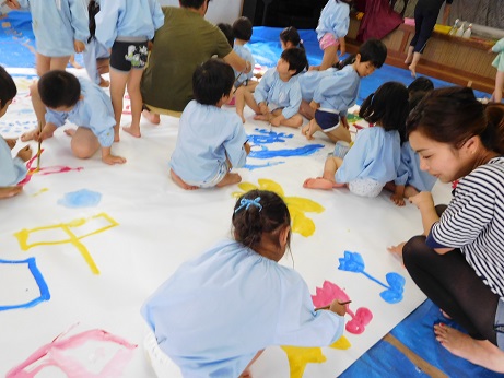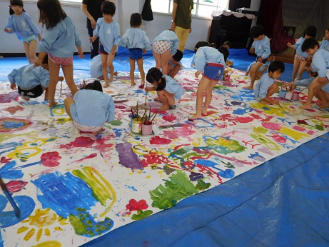 年長組の絵の具あそび