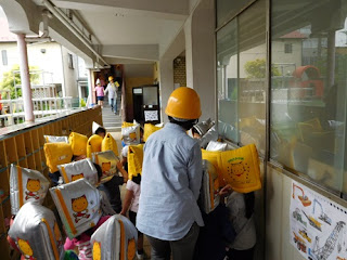 今日は、今年度初めての避難訓練です。