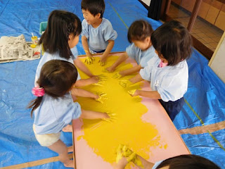 幼稚園では「赤」「黄色」「青」の3色を使うことが多いです。この3色で、黒以外の大体の色を作ることが出来ます。