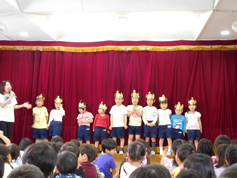 クラスの先生に呼ばれ、5月生まれのお友達が前に出てきました。