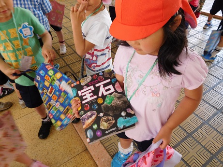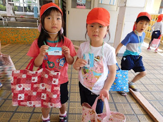 みんな自分の図書館カードとおつかい袋を持て準備OK