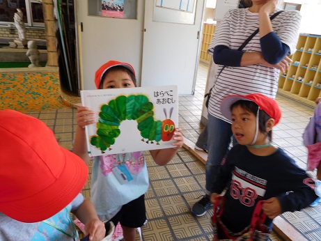 今日みんな借りた本を持ち帰りました。お家で見たら、図書館に返却をお願いします。