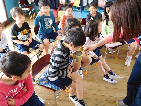 ゆきぐみの部屋に行くと、何やら匂いをかいでいます。