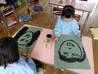 今日は自分の顔を「墨」で描くことに挑戦です。