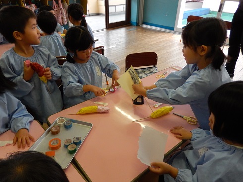 年長組のお兄さん・お姉さんと一緒に作って、楽しかったかな?