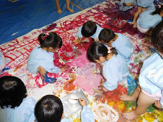 色が混ざって変わっていく事、変わった色も様々な事など楽しみました。