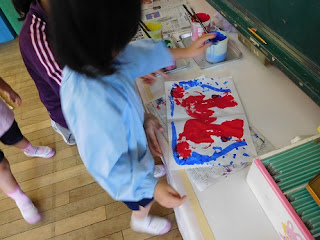 2016年6月3日2018年3月28日デカルコマニー 年中ぐみのさくらぐみは、今日「デカルコマニー」を楽しみました。 半分に折った紙に絵の具で模様を付け、半分に折って手で押さえ、 そっと広げると、不思議な模様が出てきます。 どんな模様が出てきたかな?何に見える模様だったかな? 二つ折りにして広げて変わる様子を楽しみました。 投稿ナビゲーション 前へ次へ