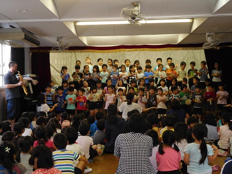 2016年7月14日2018年3月28日ジャズに挑戦 6月に年長組のお友達のお父さんがサックスの音楽を聴かせてくれました。 今日は、みんなも一緒に演奏させていただくことに。 自分の楽器を持ち、音を聞きながら演奏していました。 とても楽しかったようで、またやりたい!という声も聞かれました。 2学期以降もそんな経験が出来ると良いなと思っています。 ありがとうございました。 投稿ナビゲーション 前へ次へ