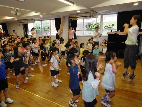 この歌は繰り返しの歌なので、踊りも繰り返し。1回で覚えられた子もいたようです。