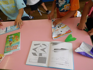 紙飛行機の折り方の本を借りてきた子は、早速飛行機を作っていました。