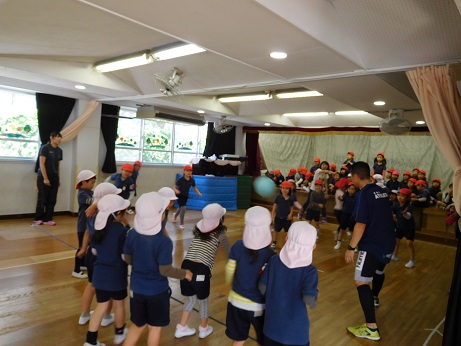 そのあと、年長組は2クラス対抗でドッジボール大会。