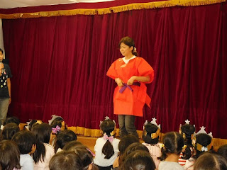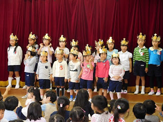 先生に名前を呼んでもらい、前に出てきた子ども達。ちょっぴり恥ずかしそうな子もいました。