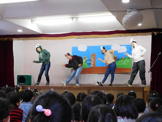 先生たちによる「たかぎ劇場」。今月は昨年の発表会で年中組がやった「明日がやってくる」のお話でした。今の年長組は「覚えてる!」「懐かしい!」と言っていて、一緒に歌う子もいました。