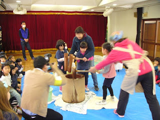 今日はおもちつきの日でした。この日のために、係の皆さんは準備をしてくださっていました。