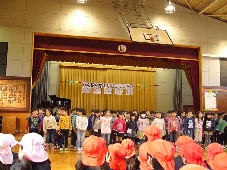 最後は体育館で♪小学校へいこうよ をみんなでやりました。