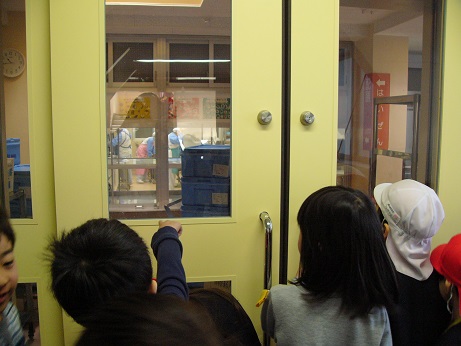 校舎内の一部も見せてもらいましたが、特に「給食室」が印象に残ったようです。