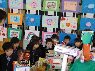 保護者の方に自分の作ったものの説明などあったと思いますが、今日はクラスの仲間と一緒に再度他のクラスの作品を見て回りました。