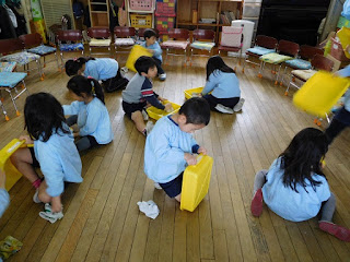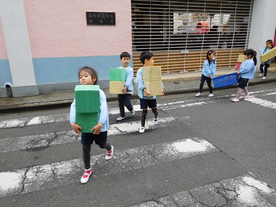 さすが年長組。大きなおもちゃを持て階段を上り、運んでくれました。