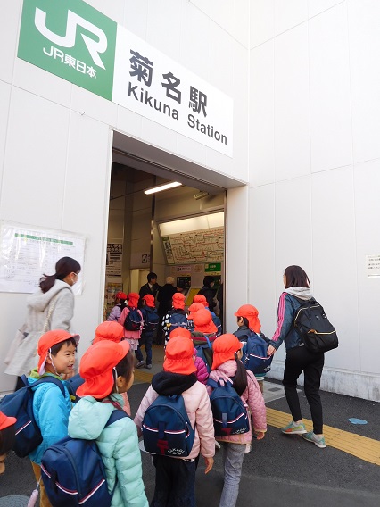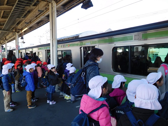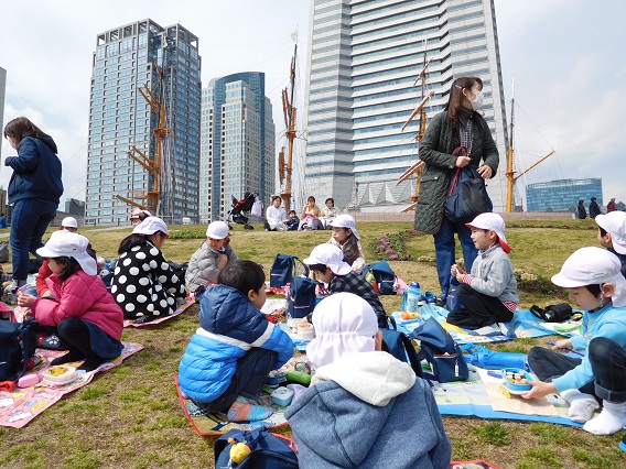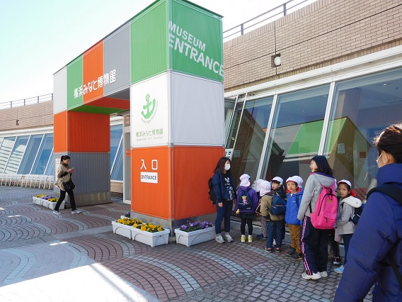 今日は年長組のおわかれ遠足でした。菊名駅から電車に乗り、桜木町へ。